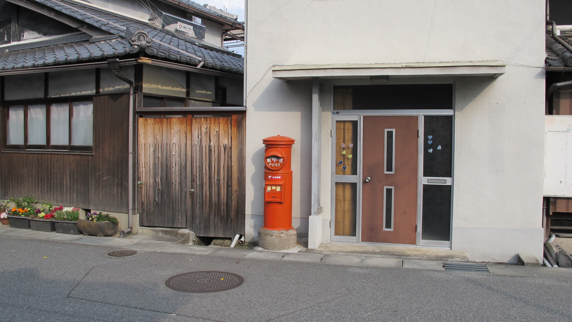 家屋の扉のすぐ近くに設置されている丸型ポストの拡大画像 (JPEG: 669.6KB)
