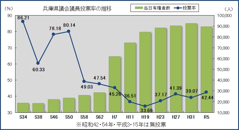 兵庫県議会議員選挙投票率の推移 (Excelファイル: 27.5KB)