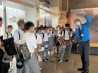 博多駅に到着しました。バスに乗りかえて、バスガイドさんと対面しました。これから45分ほどかけて大刀洗平和記念公園に向かいます。