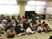 3月12日(木曜日)、3年生が英語劇を行いました。それぞれのクラスが2年生を招いて発表しました。動物のお面を頭につけて、しっかりと英語でセリフを言う3年生。ねずみや馬など、いろんな動物が出てきた最後にドラゴンが登場し、2年生も大盛り上がりでした。英語をつかって楽しく演じる3年生の姿を見習って、2年生も来年挑戦できるといいですね。